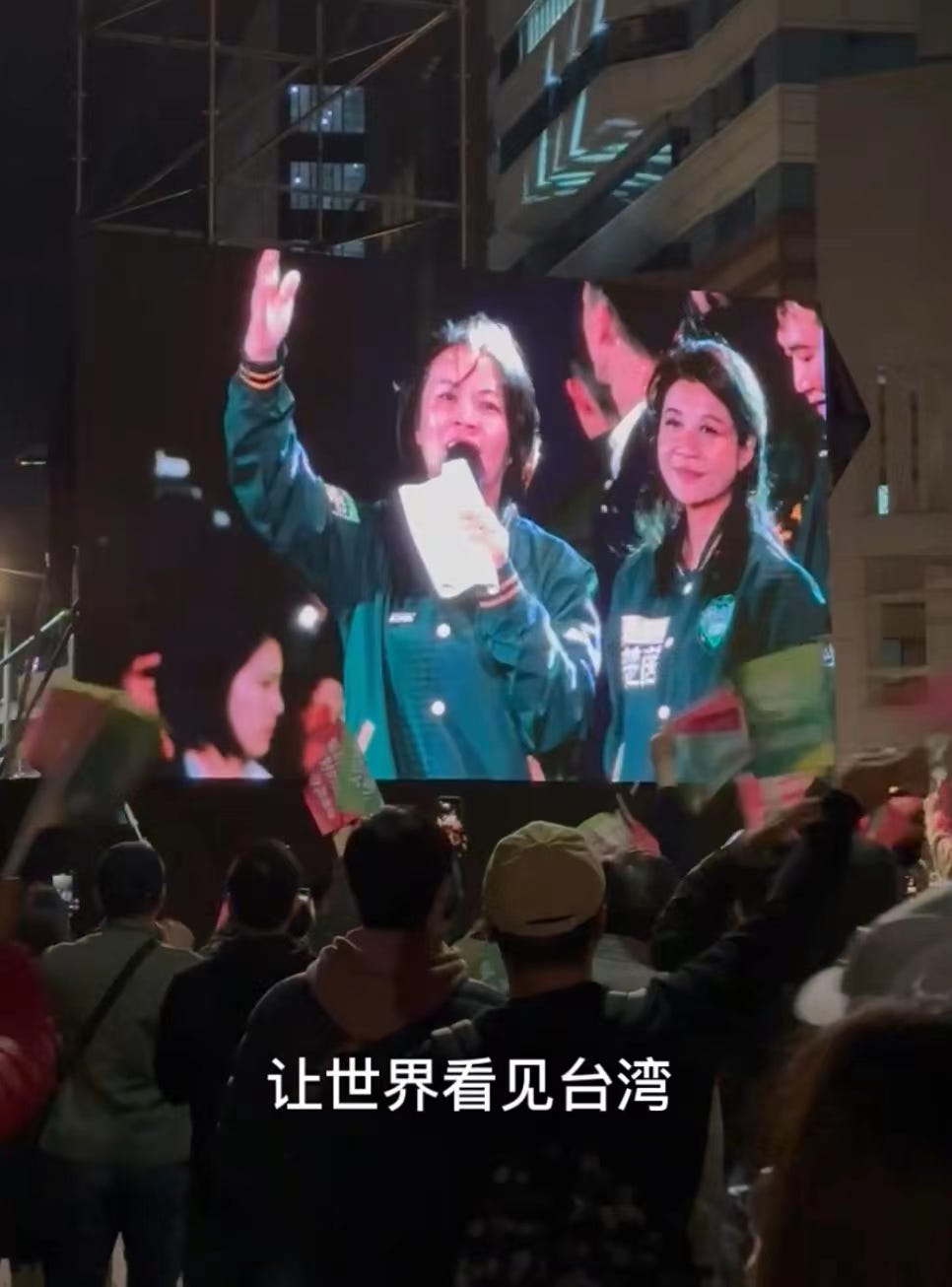 还有一些穿插的部分,比如请各种人上台发言。我们依然是谁都不认识,讲台语(闽南语)的部分,更是如果没有字幕全都听不懂。记得中间有出场在加拿大参选市议员的女性,还有在纽约持律师执照的男性。两位都是英语、国语、台语三个语言穿插着发言,主持人也特意强调了:他们作为台湾的下一代在世界打拼,但也都会讲台语。想来这个部分是迎合民进党的竞选广告主题——“世界的台湾”(这支广告我个人认为很值得一看,可以理解到一些东西)。