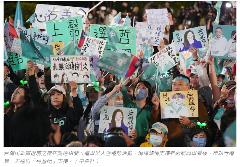 柯文哲的竞选口号是“下架蓝绿”,台湾能走出“第三条路线”,他的动员大会的标题是,“把国家还给人民”,并且在youtube上全程直播。动员大会也有很多youtube网红播主参与。