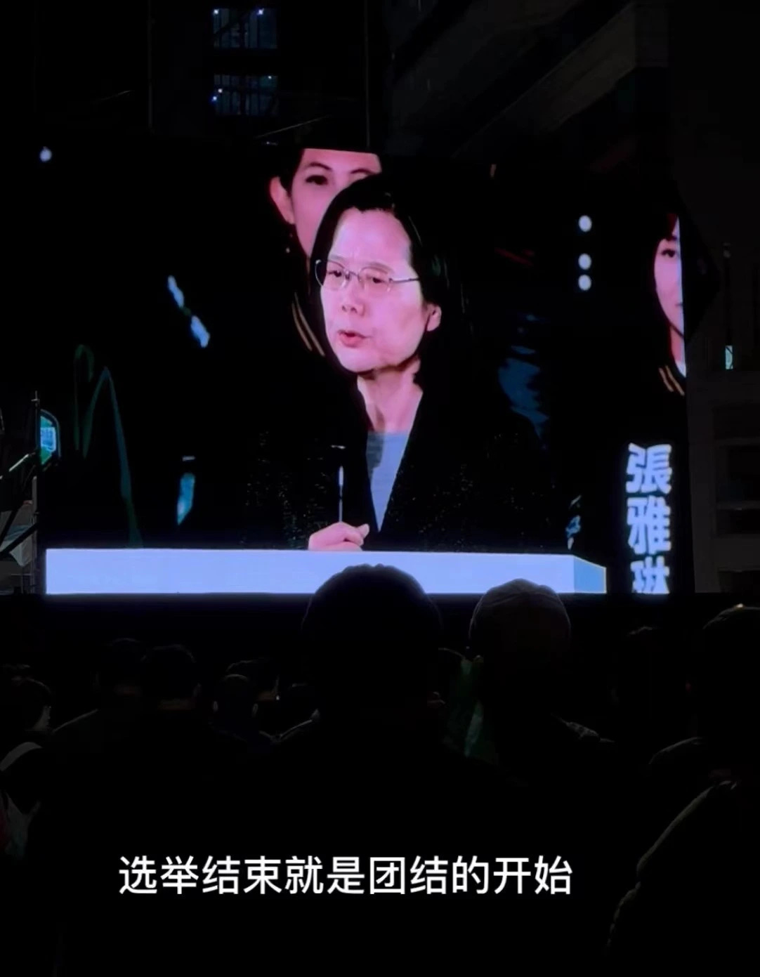 “经过这场选举,我们一起向世界证明,再多的压力都无法打击我们对民主的坚定信心,更不会让我们放弃对自由、对家人的热爱。谢谢大家8年来不离不弃的支持,和我们一起走到这里,今天的台湾已经成为了一个更好的台湾。”