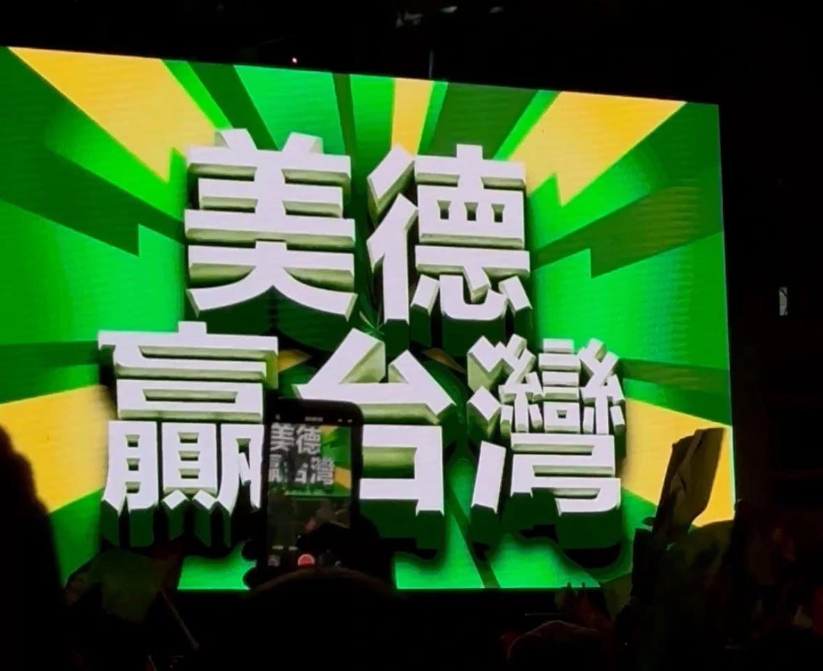 也是一样有嘉宾的表演。然后每隔一阵子主持人就会出来请大家一起大喊口号:“美德赢台湾,台湾赢得美。美德赢台湾,台湾赢得美!”(美指的是萧美琴,德指的是赖清德)